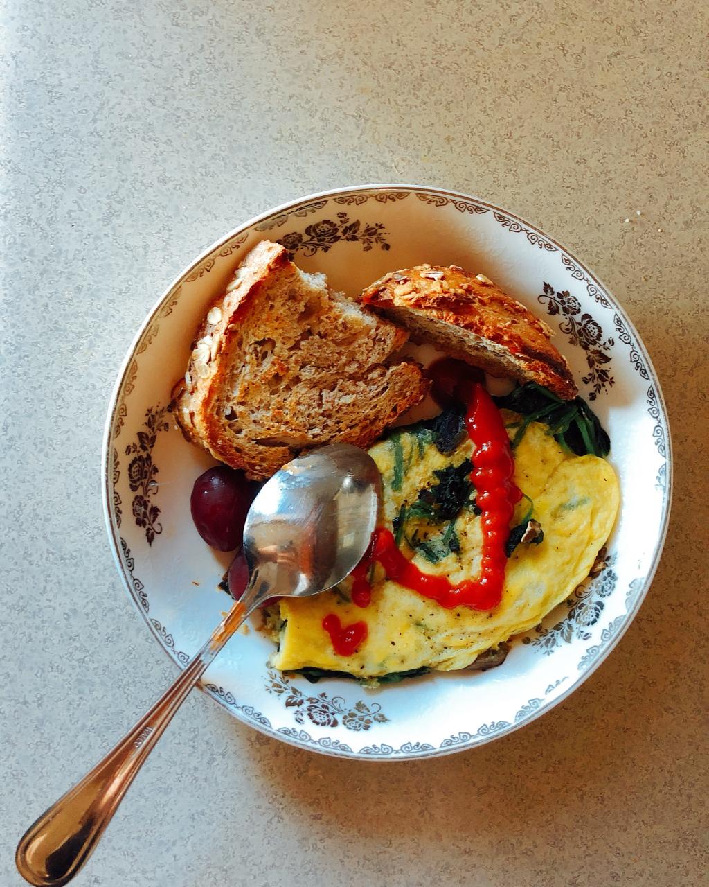 菠菜蘑菇omelet~欧包~