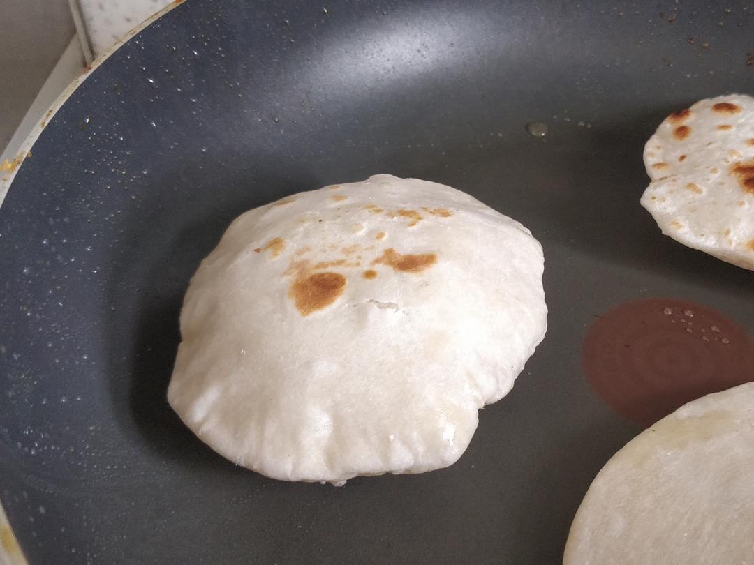 象气球一样慢慢胖起来,中印结合,配上朋友做的手见青酱,完美。下次试试面再软点,咬起来不费牙口 #早餐•2018年9月12...