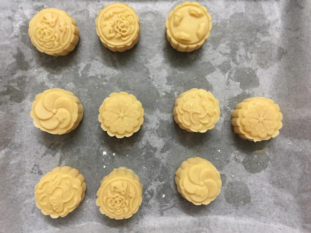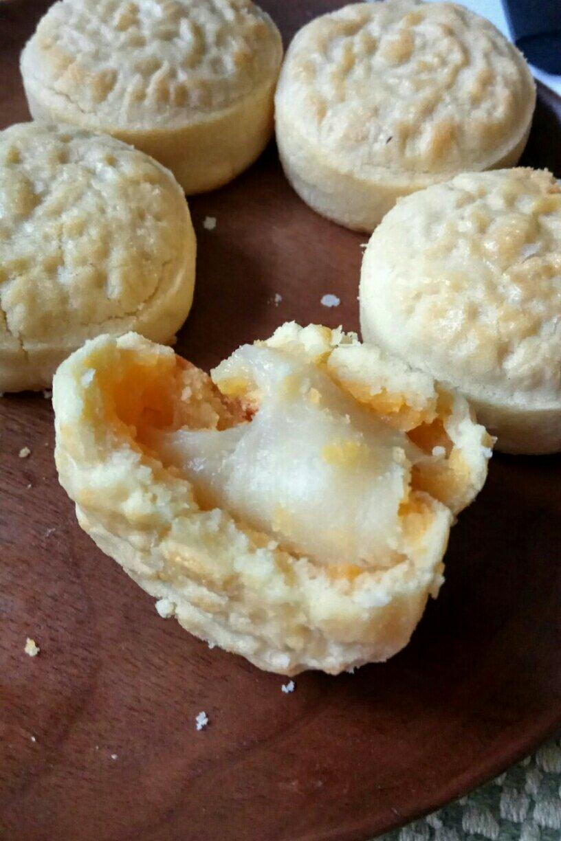 象饼干一样的拉丝月饼,奶黄是自己炒的,过程太复杂,看了好多遍才敢动手