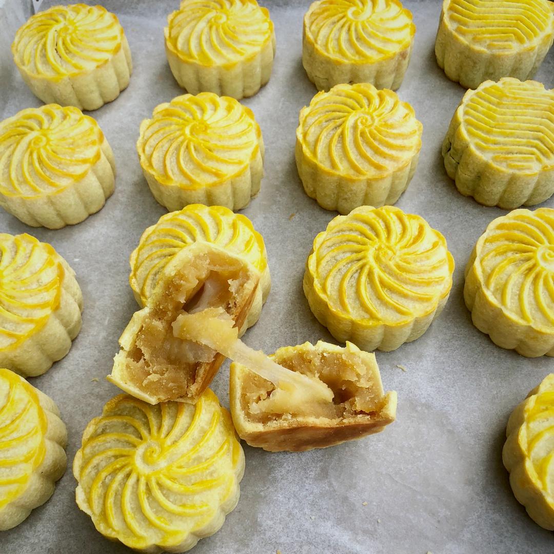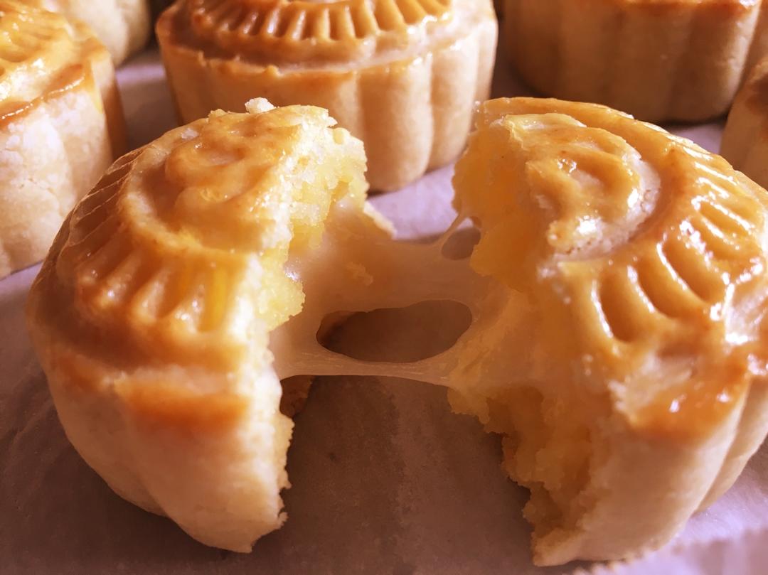 #奶黄拉丝月饼#