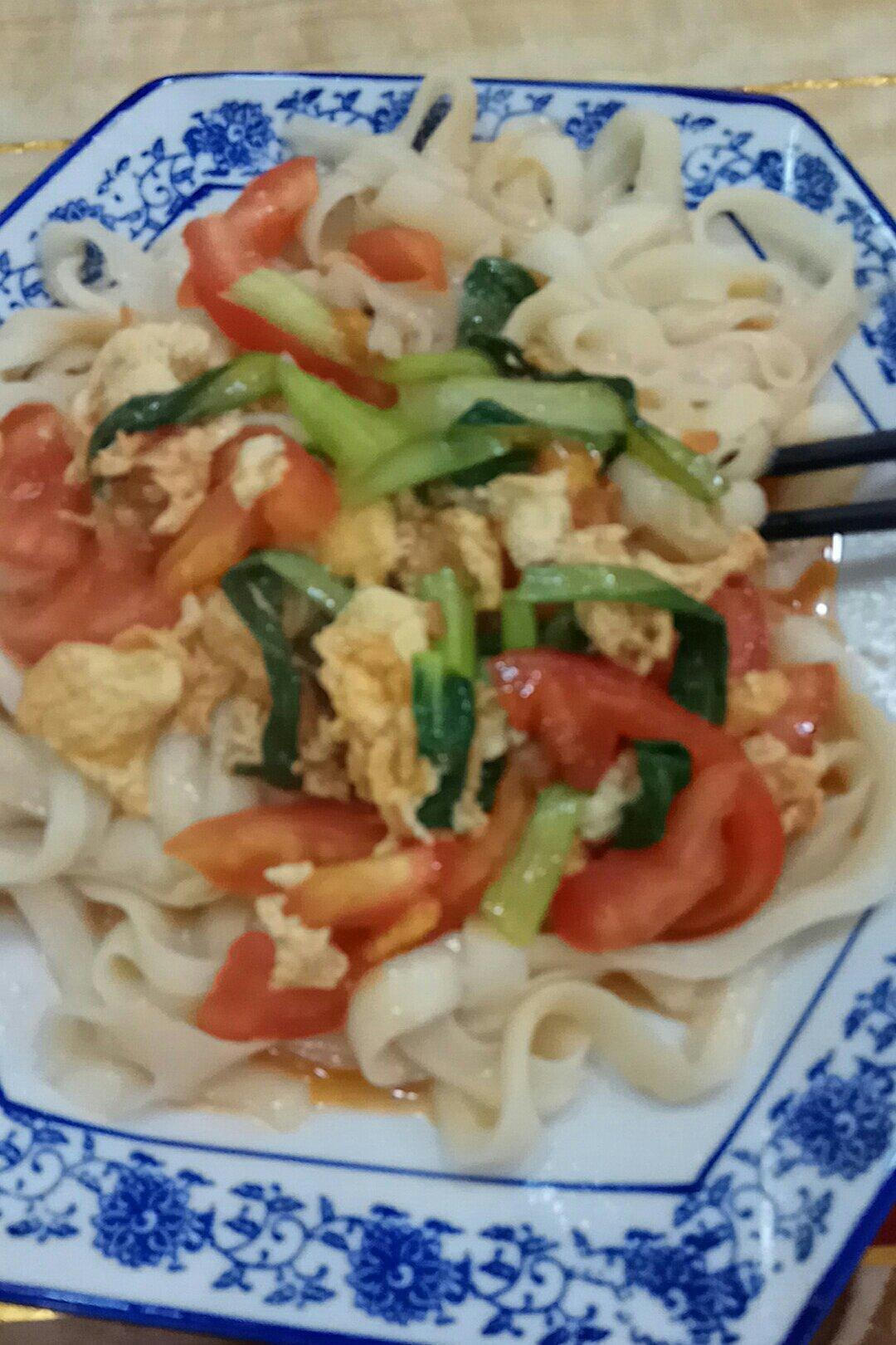 出去外面吃的 西红柿炒蛋刀削面