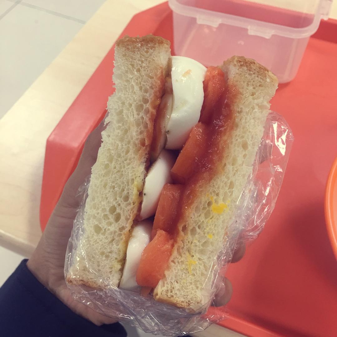 在食堂吃自带的三明治,脸皮够厚,哈哈🌚