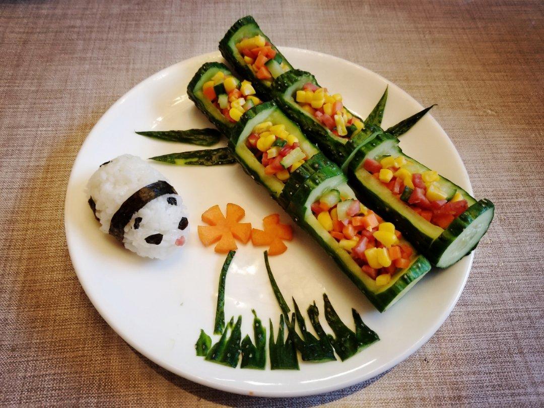 竹子做少了,比例有点不搭,黄瓜雕工也差点儿🤣,但是胜在味道,清爽的年夜饭,做起来麻烦,吃起来香😝