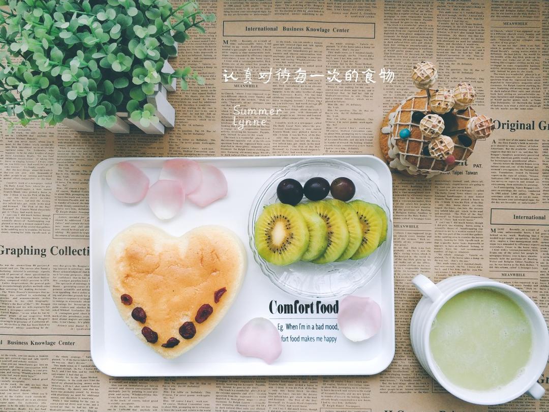 早餐轻乳酪蛋糕,莲子羹,水果,周末时光荡漾开来。