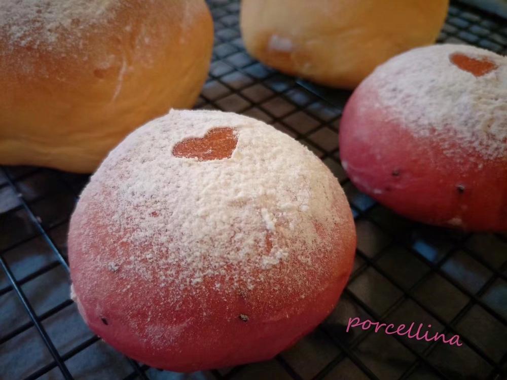 #心形火龙果椰蓉面包#