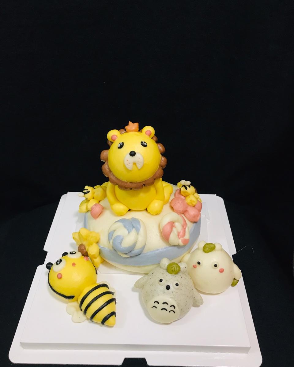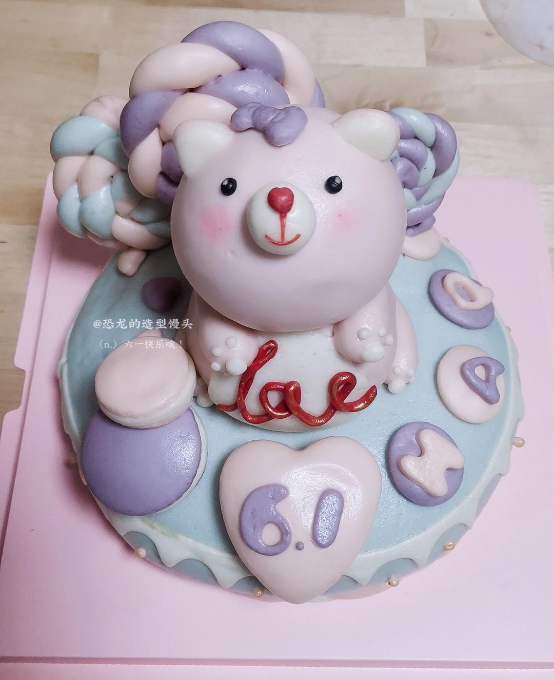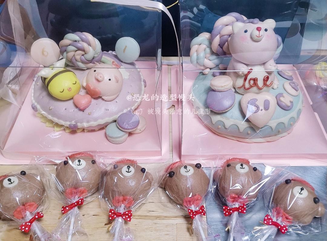 这是一个客订的蛋糕馒头,双胞胎宝宝一周岁生日,属狗,让我做两只可爱的小狗,这就构思了这样一组,因为是女宝宝,所以用糖果取...