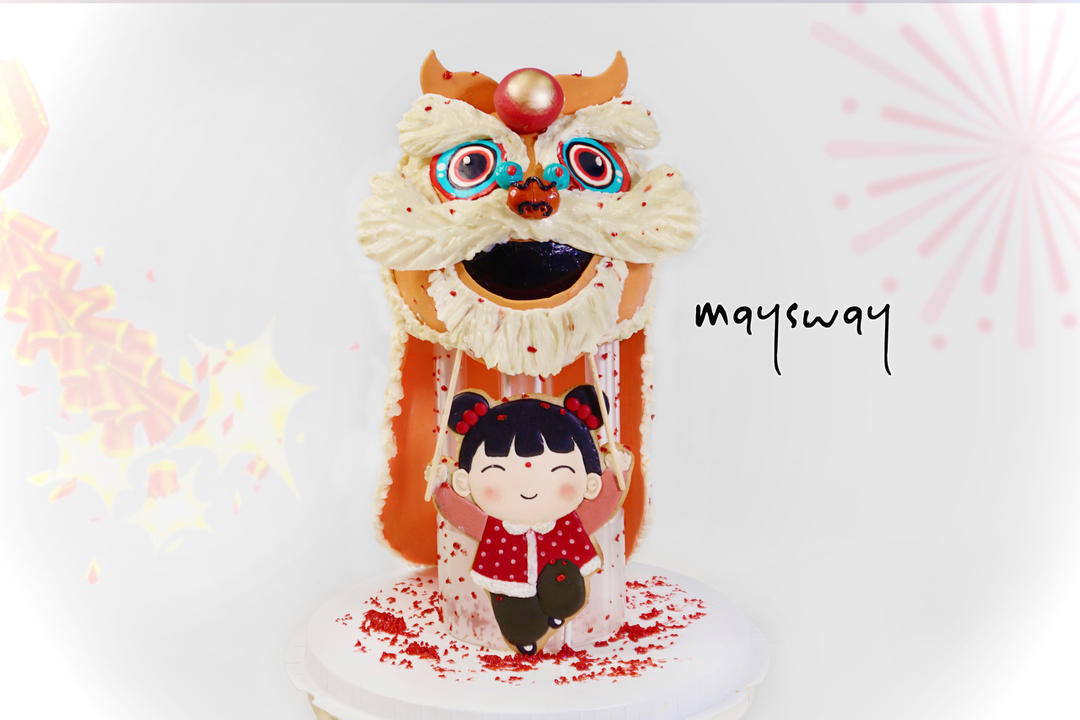 她说女儿喜欢舞狮,让我以此为主题设计蛋糕,于是在炎炎夏日之中,有了这个充满新年气氛的蛋糕😂 我的蛋糕是一方小舞台,在这里...