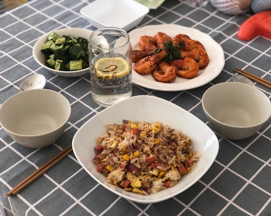 不吃外卖日常食谱——虾油蛋炒饭配上西兰花虾仁蒸蛋,味道太绝了😭