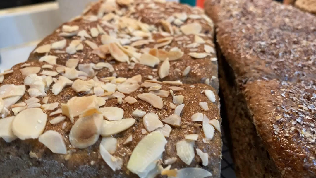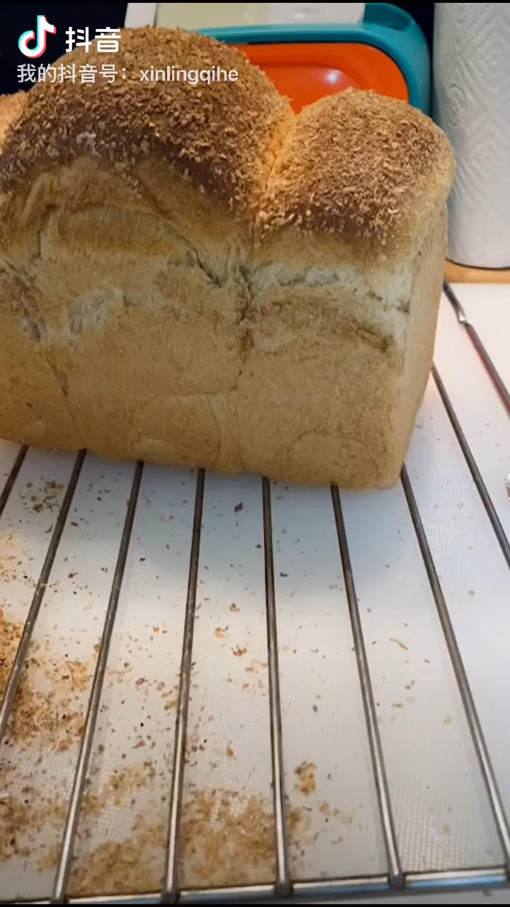 这款全麦面包里面我融入大量的麦种,胚芽、麦麸、果仁,少量蔓越梅...
