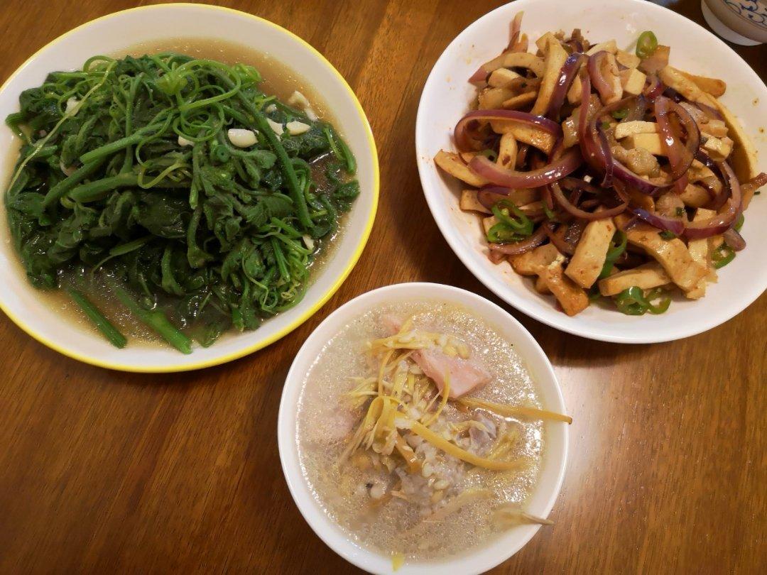 今天晚餐,有点云南特色。芭蕉花做的汤,这是傣族小伙子教我的,说芭蕉花功效...