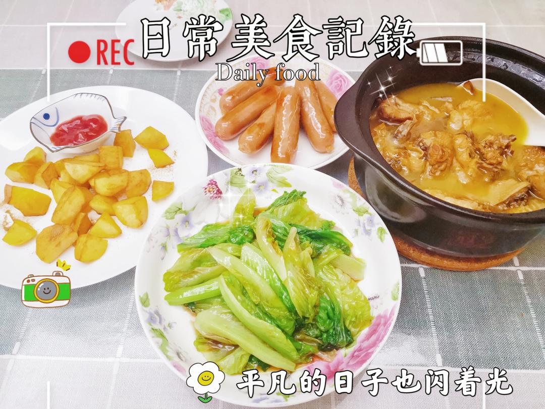 偷懒了,和了玉米胡萝卜肉馅包饺子的,结果做了三个菜肴,可以的可以的!美味佳肴是简单的~