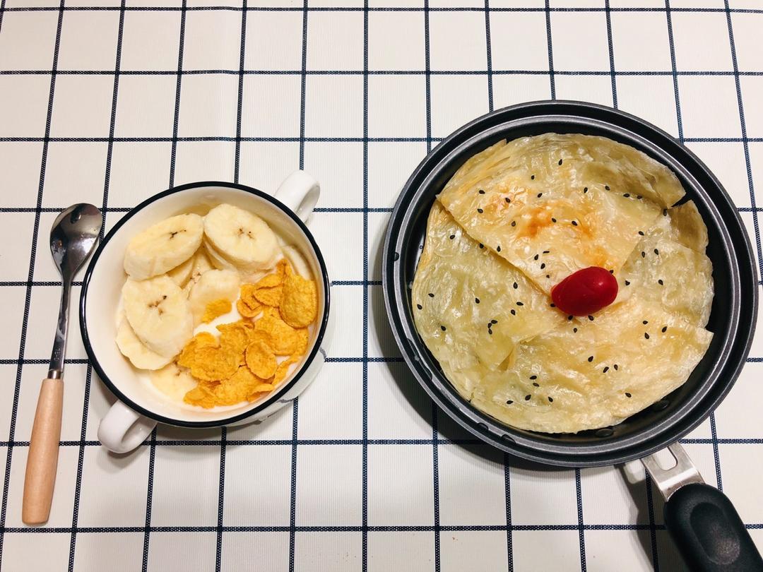 今日早餐:手抓饼➕香蕉麦片酸奶杯