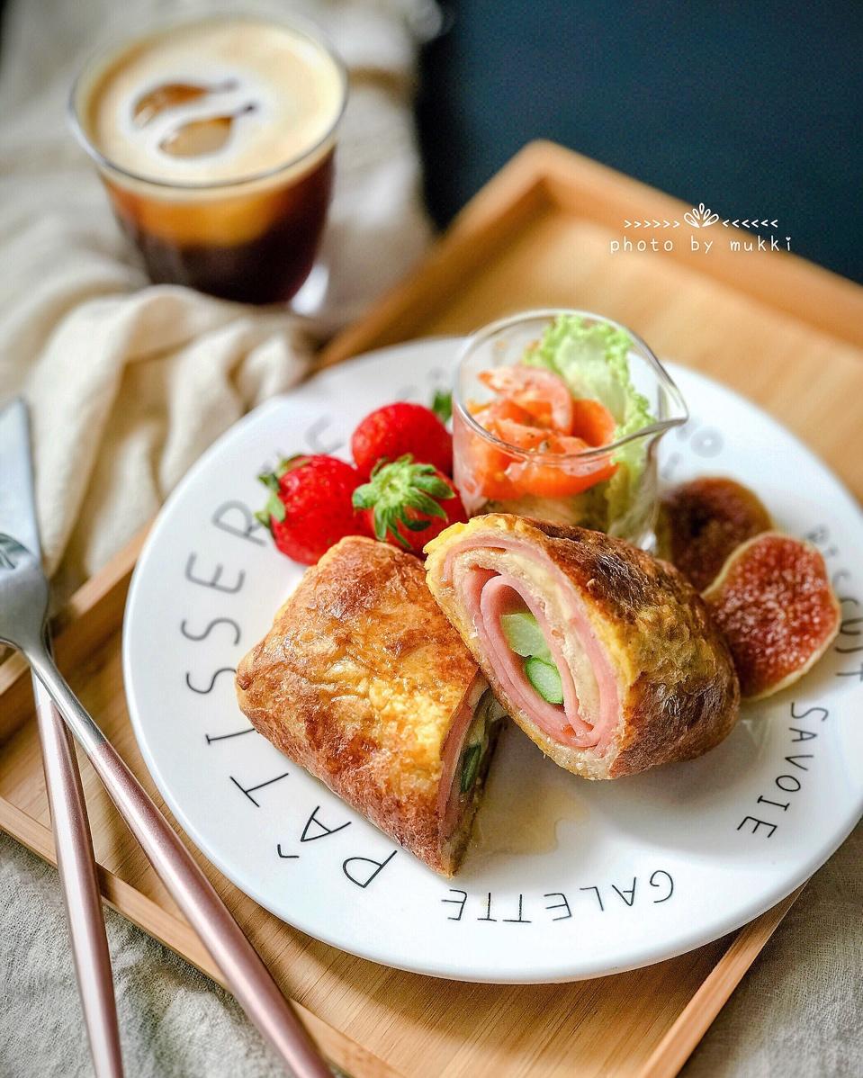 今日早午餐 - 火腿蔬菜吐司卷、mini蔬菜色拉、无花果&草莓