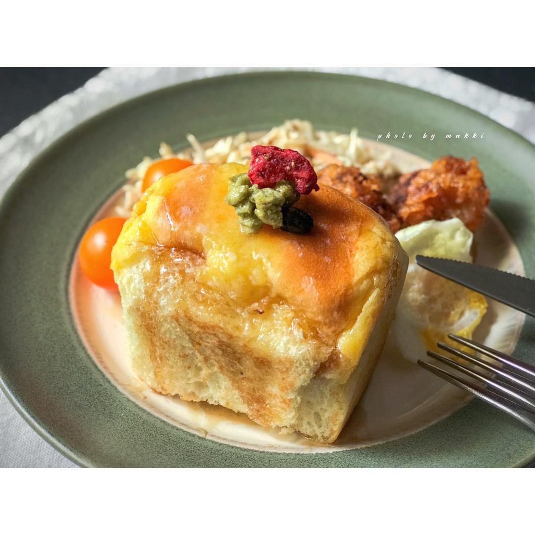 今日早午餐 - 枫糖黄油牛奶软吐司、蔬菜色拉、炸鸡块