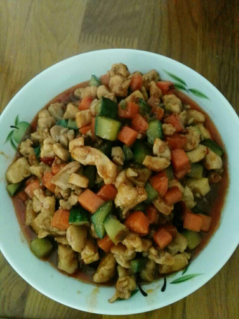 第一次在家做宫保鸡丁,虽然不很正宗,但是符合家人的胃口,以后再进步吧