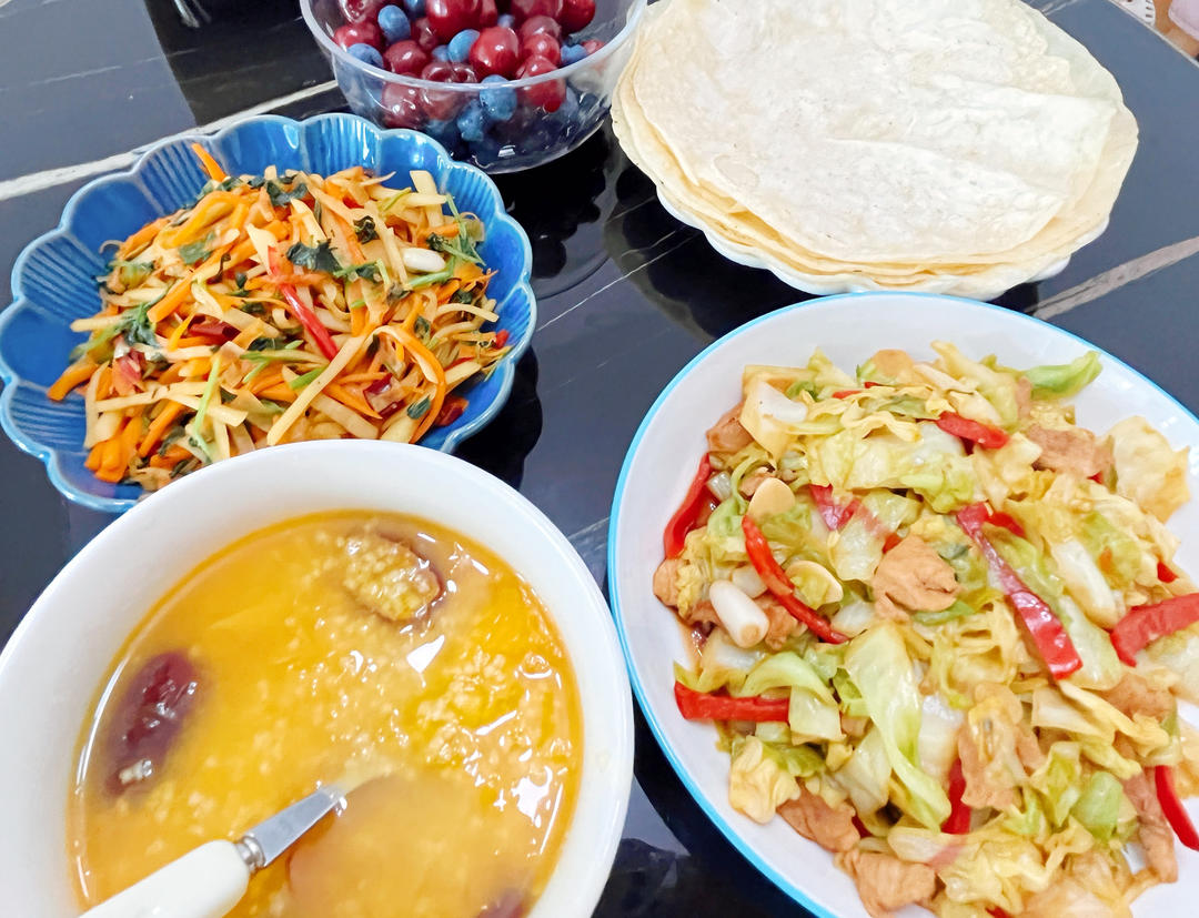 烙饼热的时候还有点软,凉了就变硬了。茄子🍆挺好吃,可是为什么颜色那么深🙂 SA汤绝!麦粒口感不错,鸡蛋花成功了,本来还想...