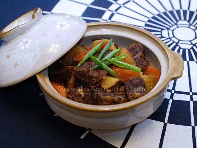 非常好吃的【土豆炖牛肉】,今天没有用红酒炖,而是用一般的生抽、料酒等调味料做的。