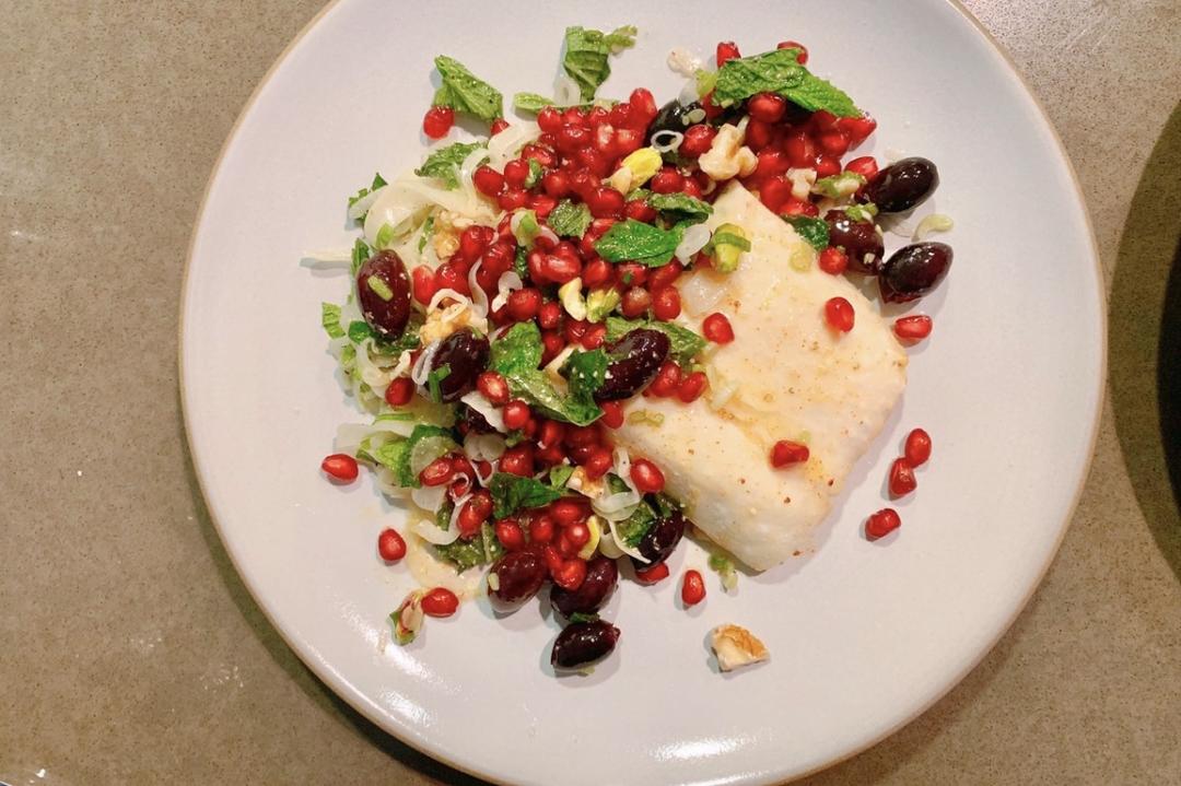 石榴和橄榄味道过于突出,盖过了halibut的本味😐