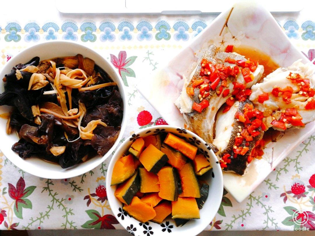连小葱都么有了..只好放点剁椒啦~剩下的牛肉汤红烧木耳和黄花菜~