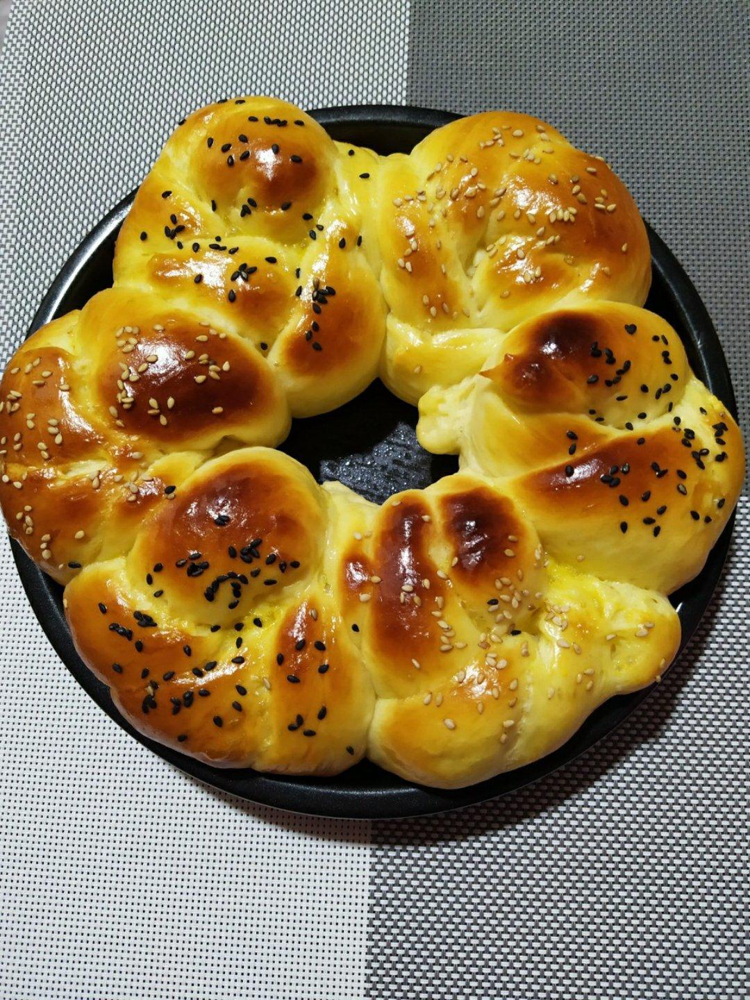 这次是有点扎实的朴实面包,还加了自制豆沙,香甜不腻