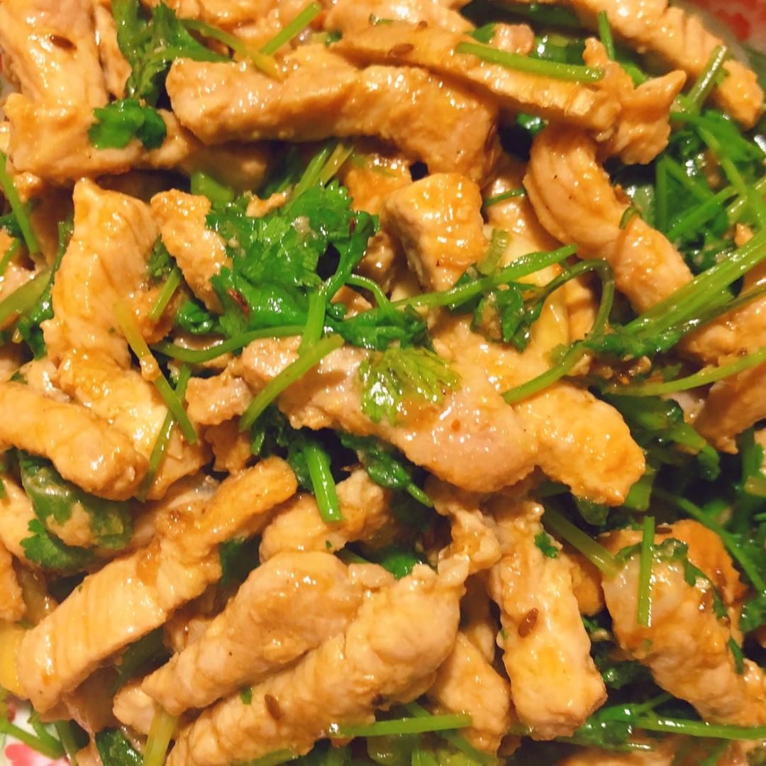 #香菜炒肉#