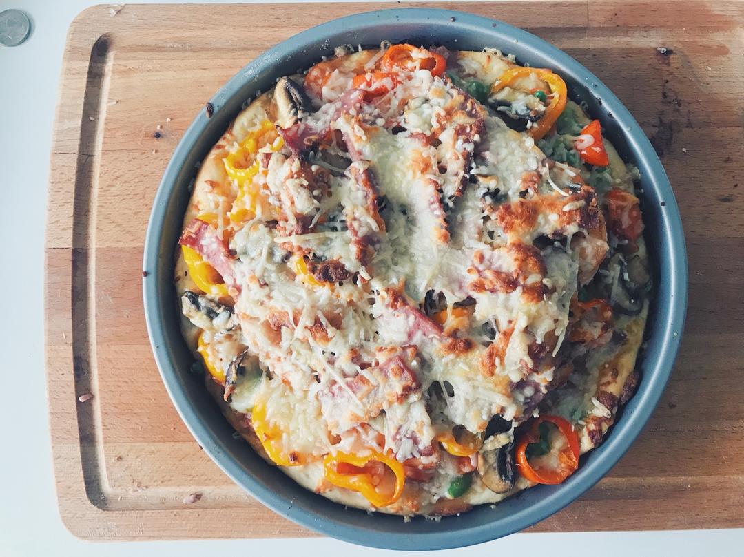 好累累..懒得做饭次个pizza啦~配上烤芦笋~