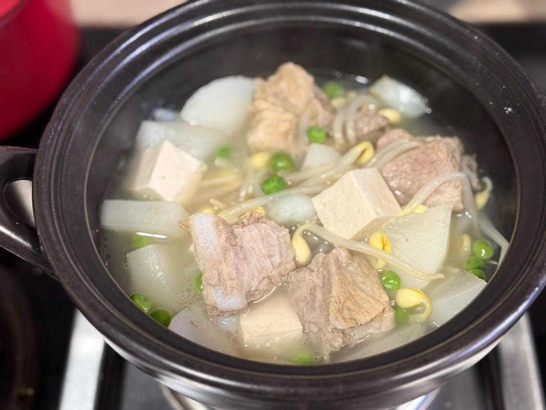 萝卜炖排骨(甜豌豆,豆腐,黄豆芽),鲜美清甜!