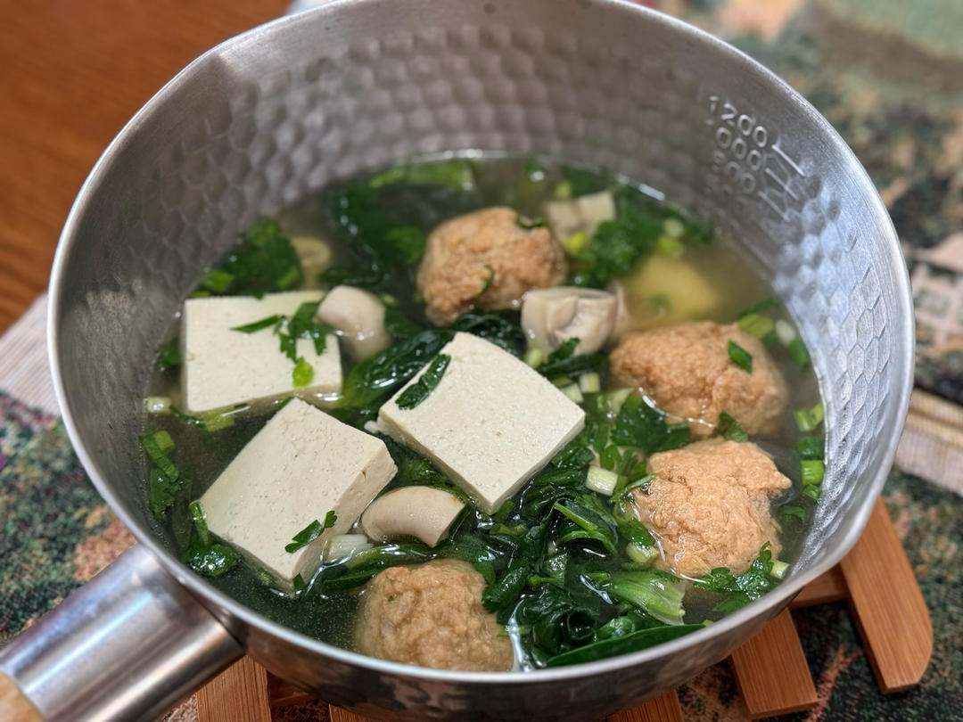 今天的午餐依然是蔬菜马蹄肉丸汤~其他配料: 豆腐,白蘑菇,芫荽,香葱,白...