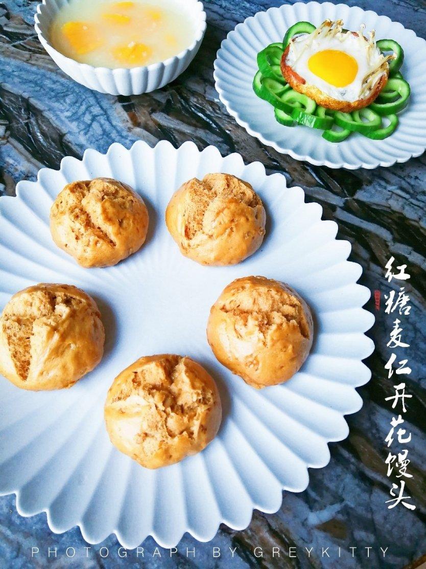 #灰猫的早餐# 2018年10月8日周一早餐:红糖麦仁开花馒头,红薯...