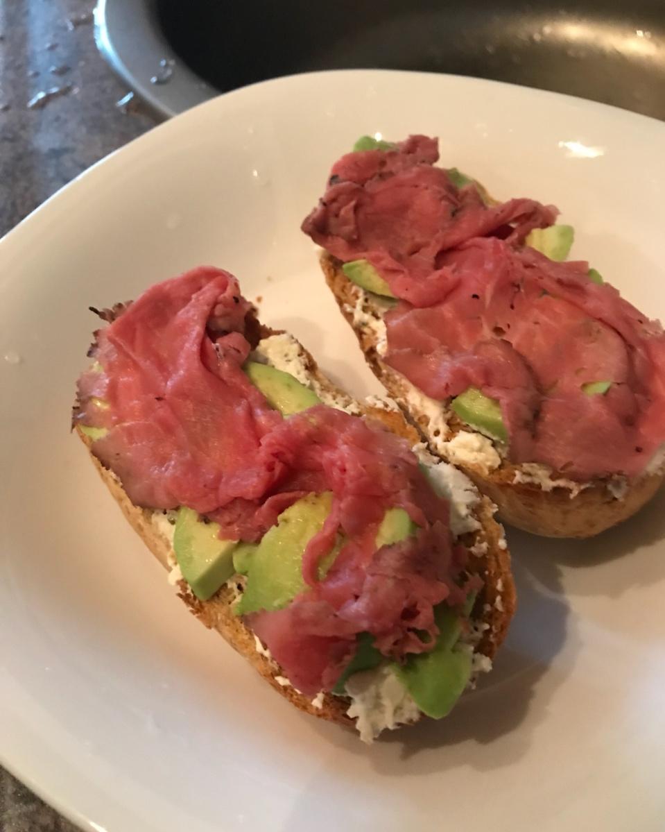 今天的早饭。烟熏三文鱼牛油果贝果加蘑菇洋葱。配上常规的酸奶咖啡。美好的一天又开始了
