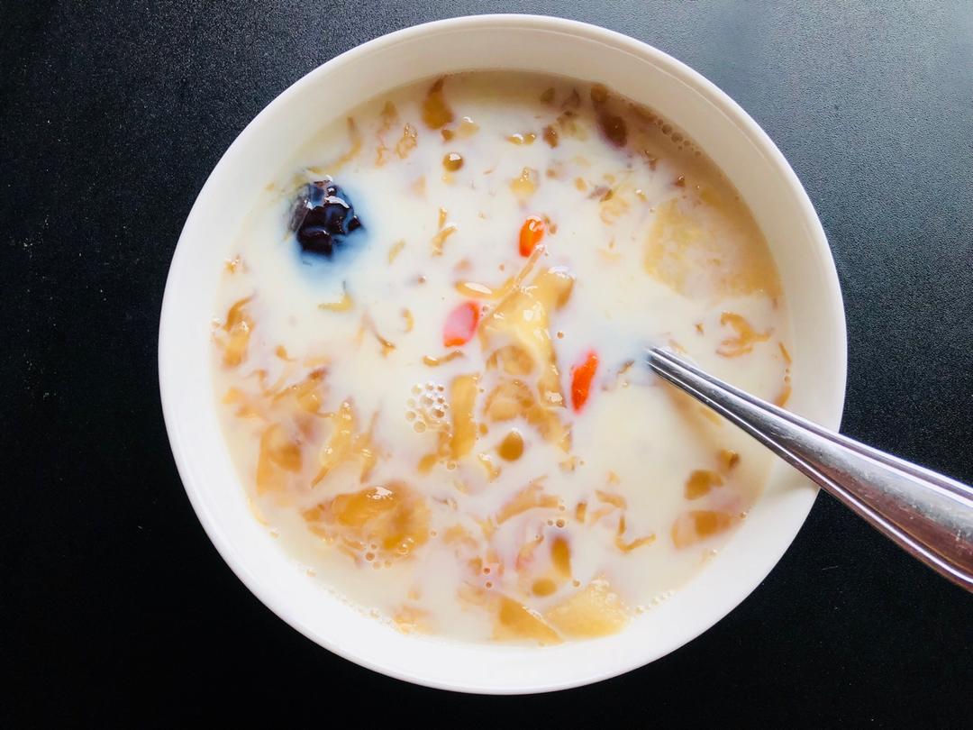 冰糖银耳雪梨红枣枸杞牛奶羹