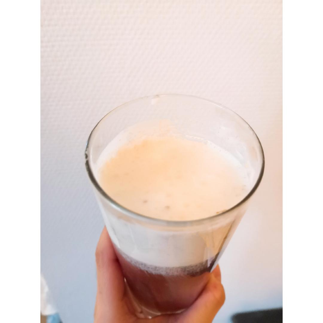 鸡蛋🥚+冰沙+燕麦。冰沙放化喝掉了~ 不想喝奶昔就只加了水打的。