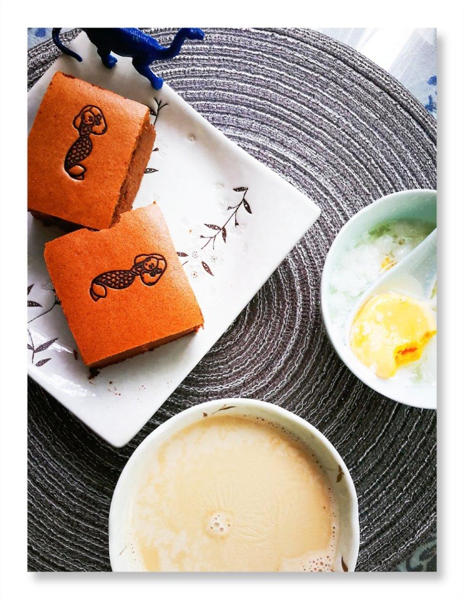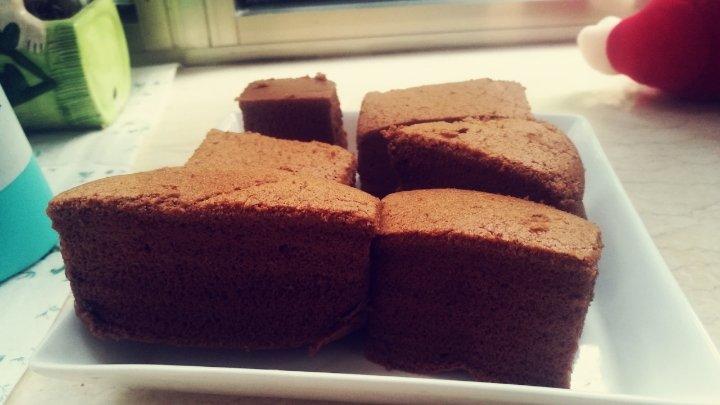 晚上试着做了一回巧克力味道的古早蛋糕,成功!耶✌️吃了2大块😋妈妈也说好吃!开心!👍就是蛋糕切的太丑...