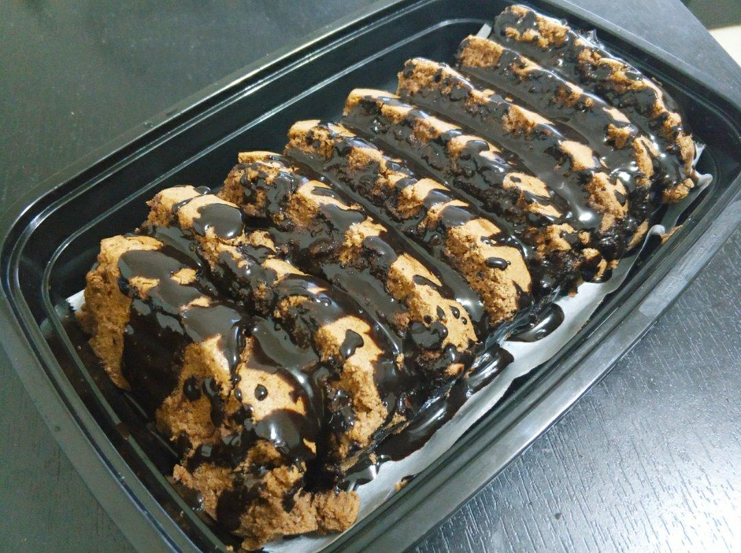 加可可粉的古早味蛋糕,自制巧克力酱淋上。