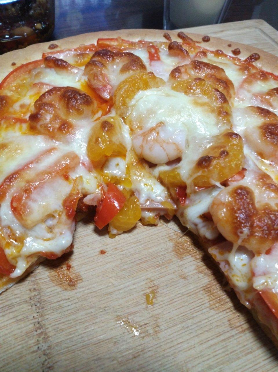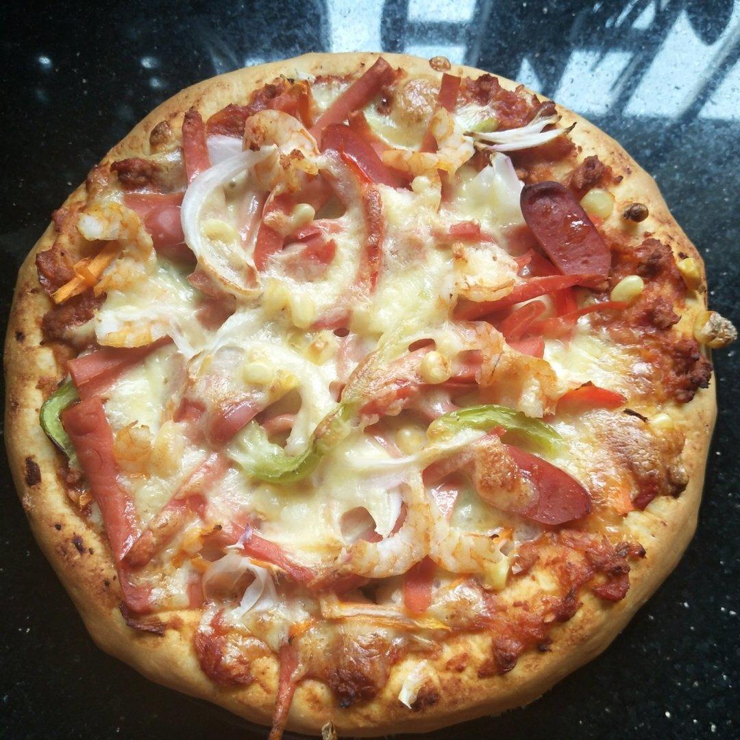 想吃披萨了,就用家里材料,之前做的冰冻的披萨皮,很快就做好啦!