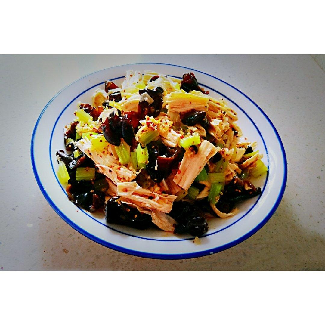 午餐愉快!💐🌻🌻炝拌腐竹香芹木耳,肉龙,花卷😊😌😌