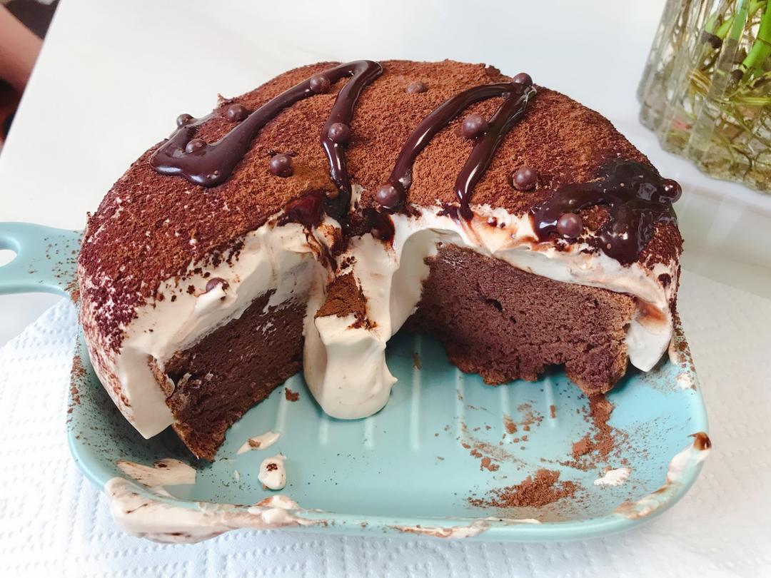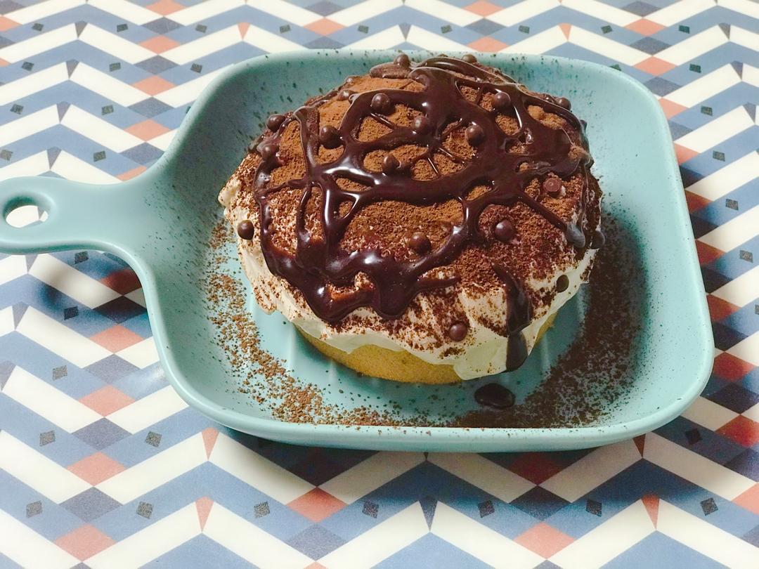 减半做了一个四寸的,奶油稍微打过一点点...除了有点甜,没毛病😊😊