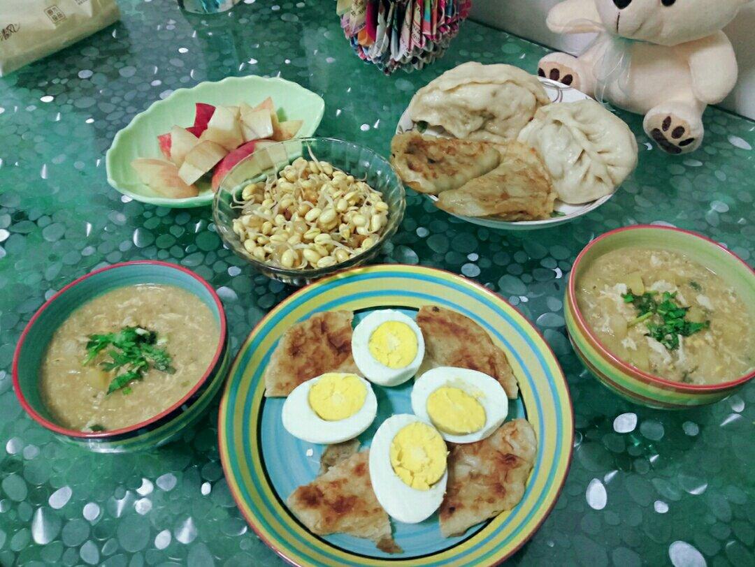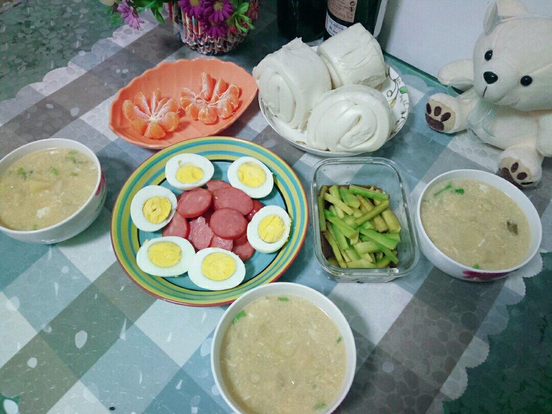 今天单位查体需要空腹,所以是他们爷俩儿的早餐~