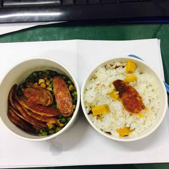 孕早早期,好像和平时的工作餐没有啥区别,除了水果多一些。以后争取多带几种花样。