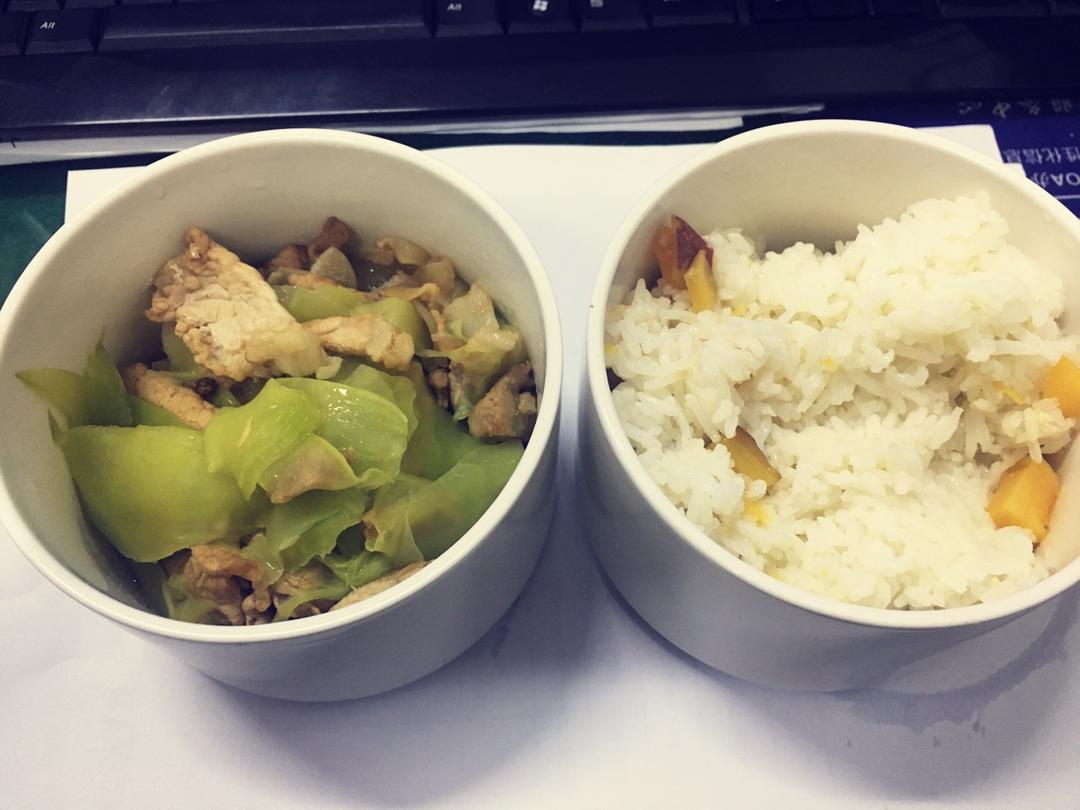 🎃鸡肉饭+虾咪蒸蛋+火龙果,今天看了营养师,让我多吃蔬菜,高蛋白,以后我可能每天要带个涮...