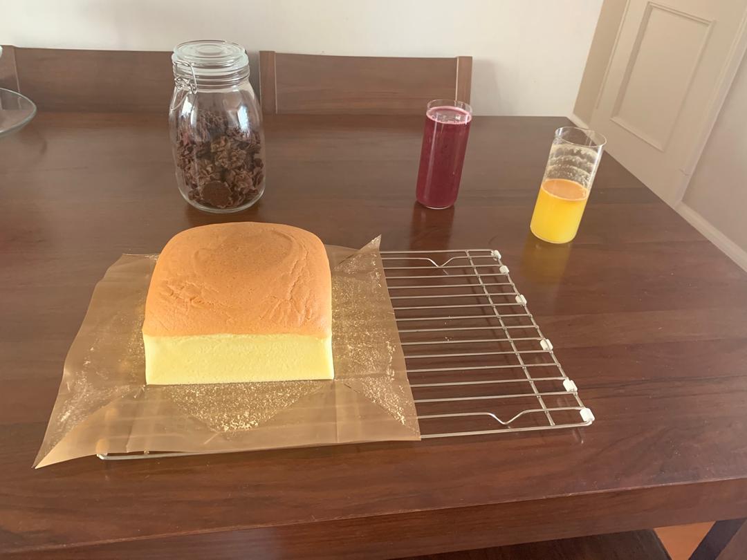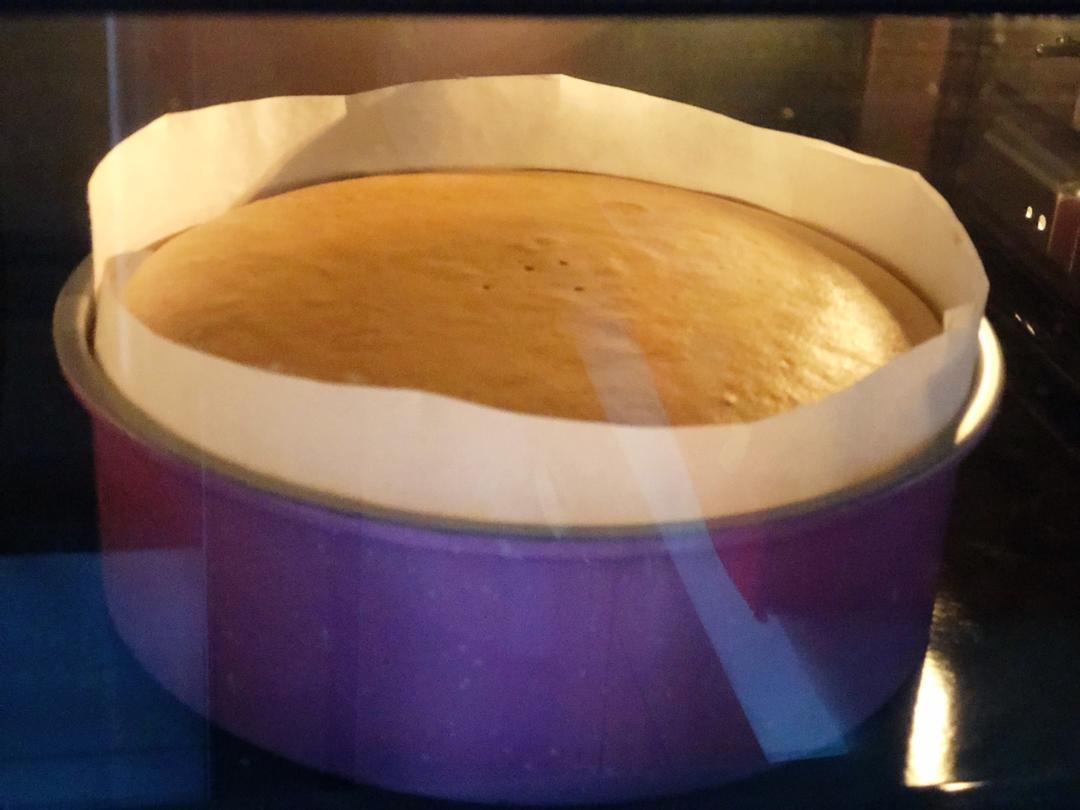6寸量 做3个4寸,部分参考方子,温度135 40分钟,表面漂亮完全不开裂,脱模不缩腰