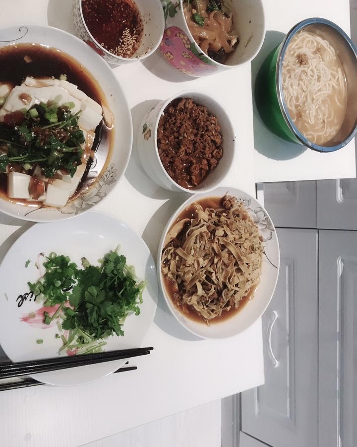 麻辣面,皮蛋豆腐,麻辣豆芽,水爆肚