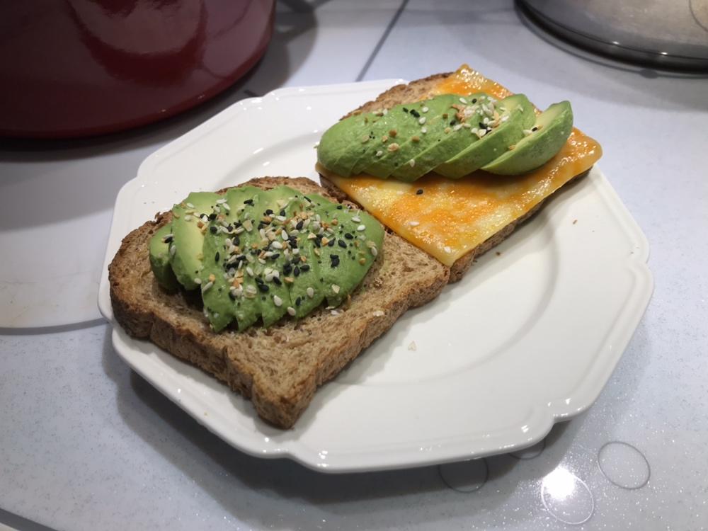 吐司牛油果加炖莲子炖桃胶,希望能到两点都不饿哈哈哈😂