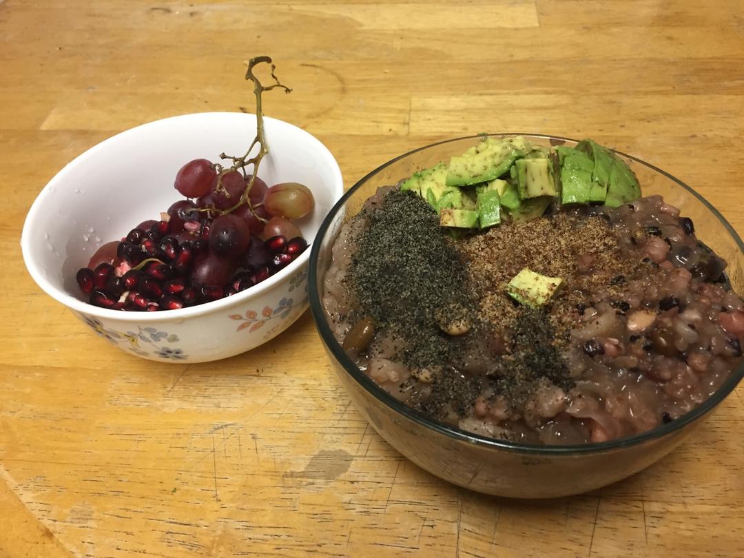 杂粮粥,石榴,葡萄