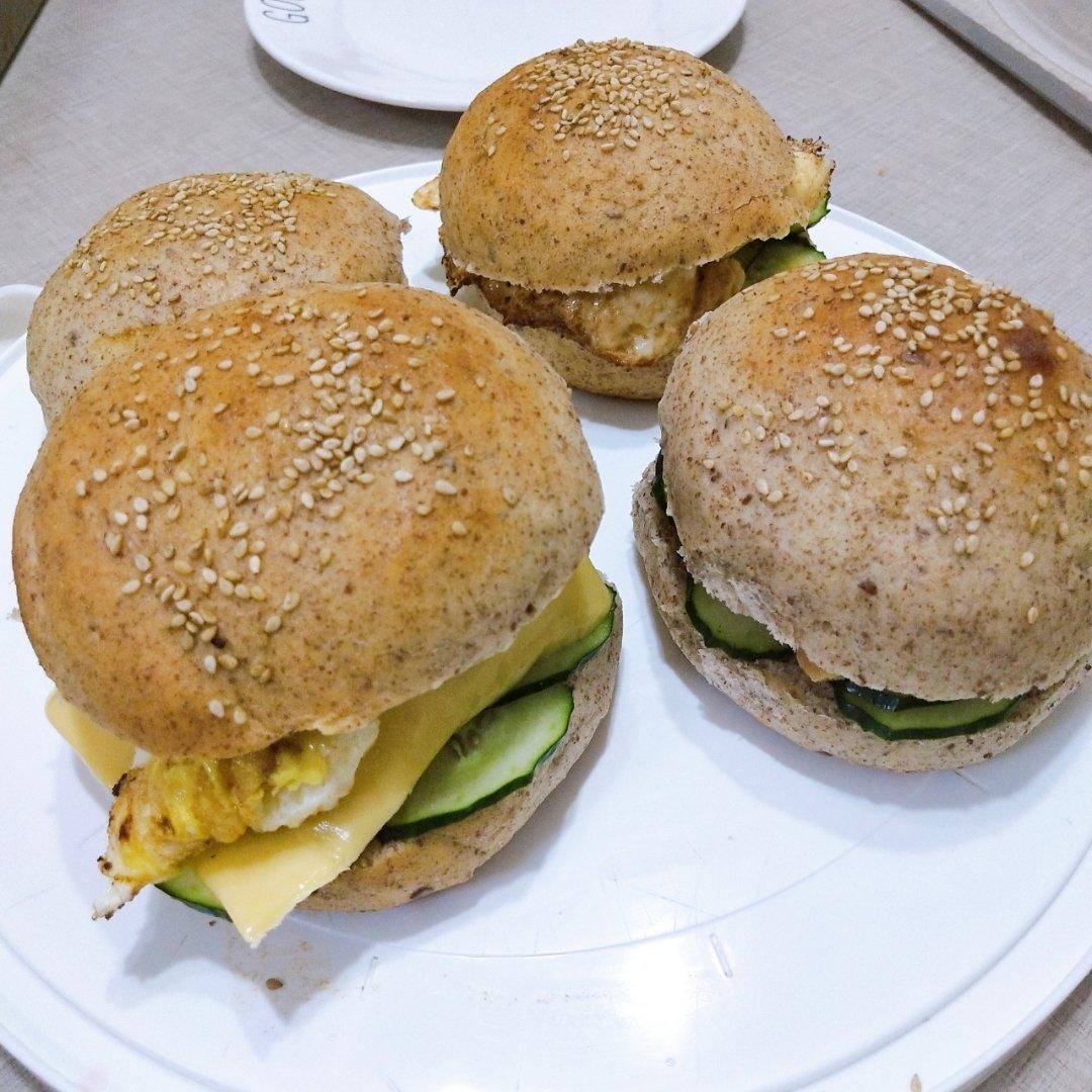 休息天的早餐,汉堡胚加了全麦粉,好吃