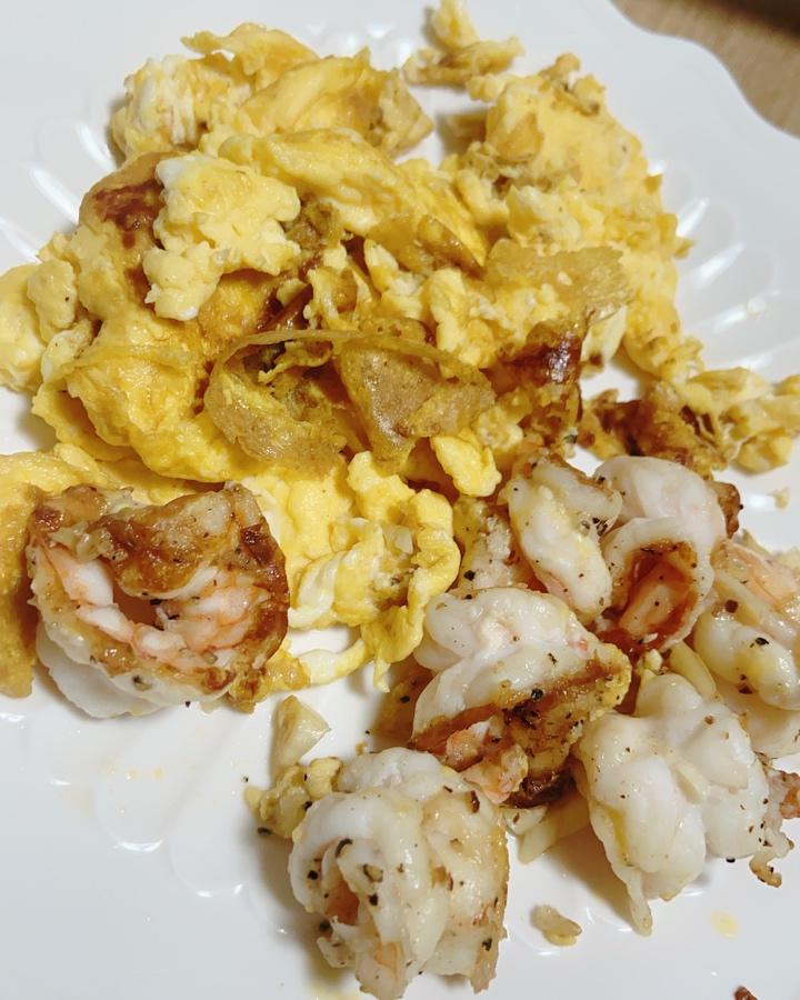 🦐煎虾仁水煮蛋