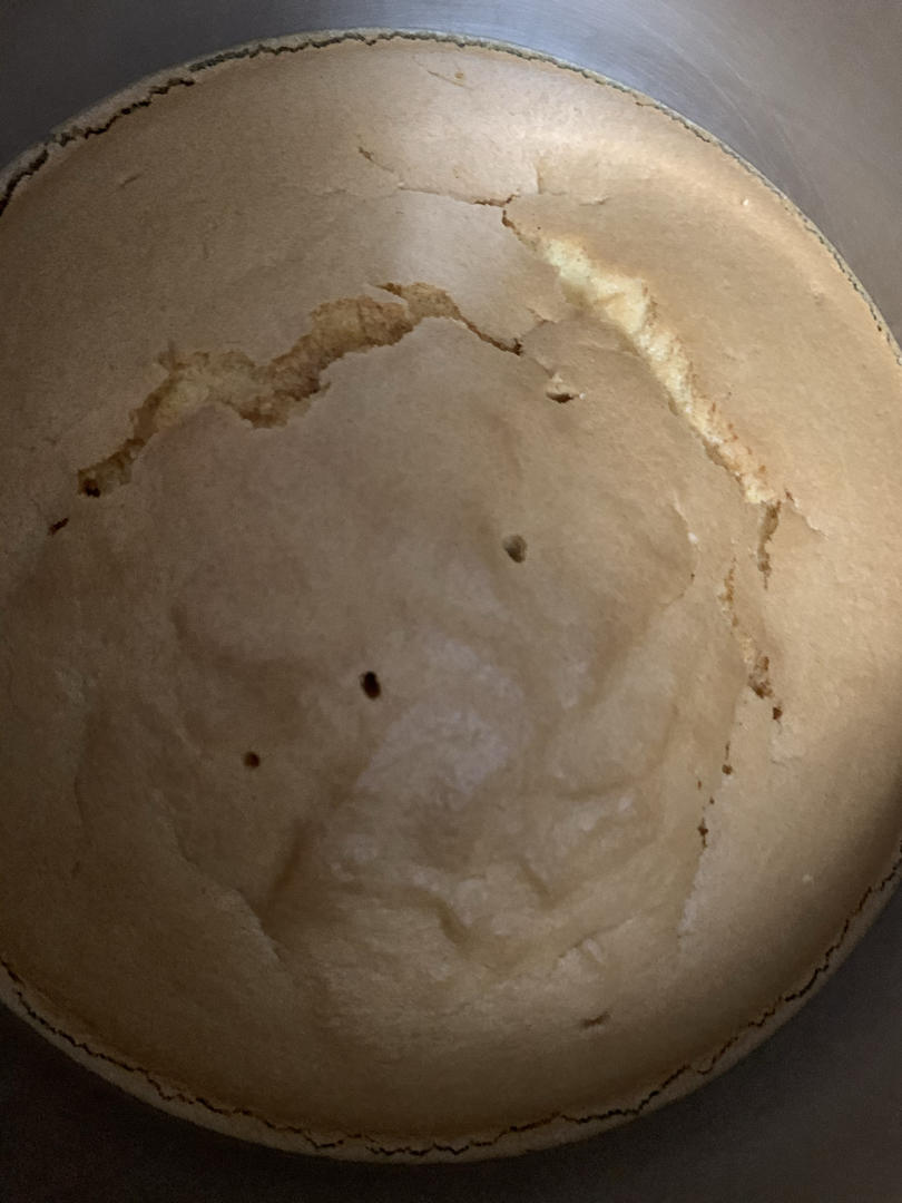 由于第一次蛋白打发失败,重新开了3个蛋,导致蛋糕浓缩了,不过至少是成功了,再接再厉哈哈哈😄