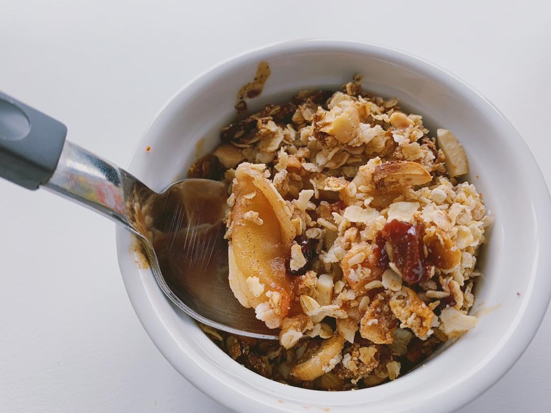 用的是自己做的焦糖浆,还加了一小撮盐,混了一包每日坚果,蔓越莓干还有奇亚籽,烤出来又脆又香,空口吃都很棒!配酸奶和冰淇淋...