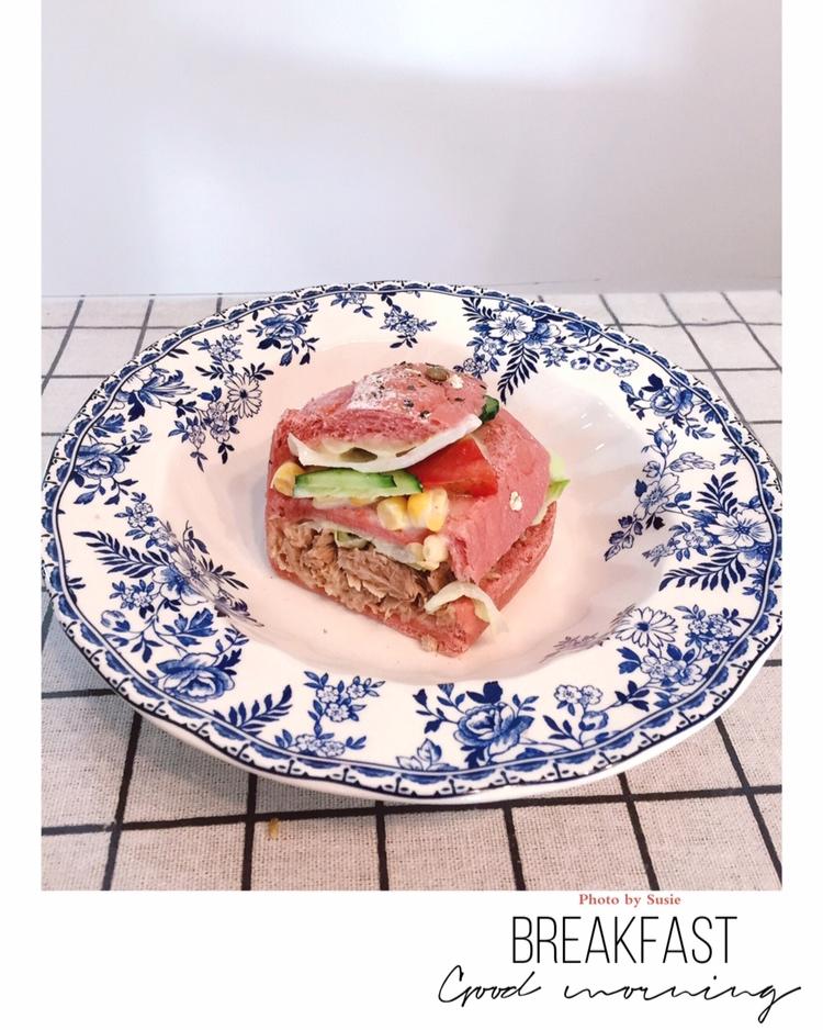 粉软欧的金枪鱼三明治