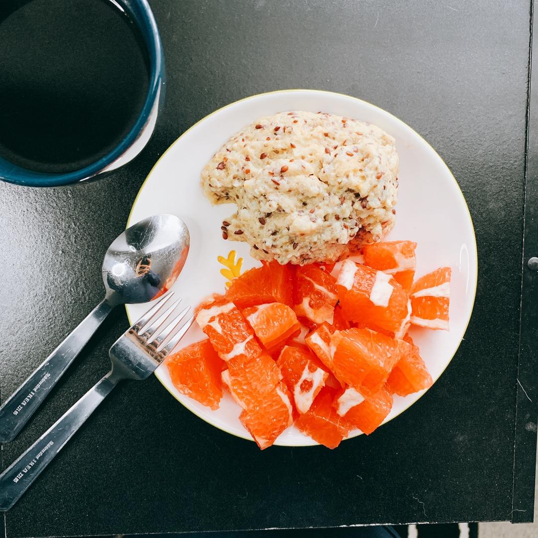 没课的早上可以睡七个小时,可以好好做早饭,真是太幸福了~牛奶杂粮糊:grits,flaxs...